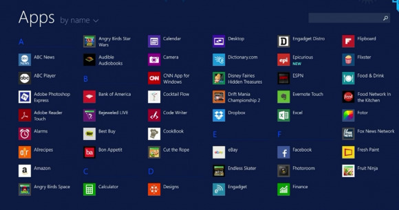 Swiping up from the bottom of the Start Screen brings you in to your full collection of apps. Where before, seeing your full collection of apps was a process that involved several button clicks and/or taps, this screen is now much more a part of the initial experience. Simple stuff.