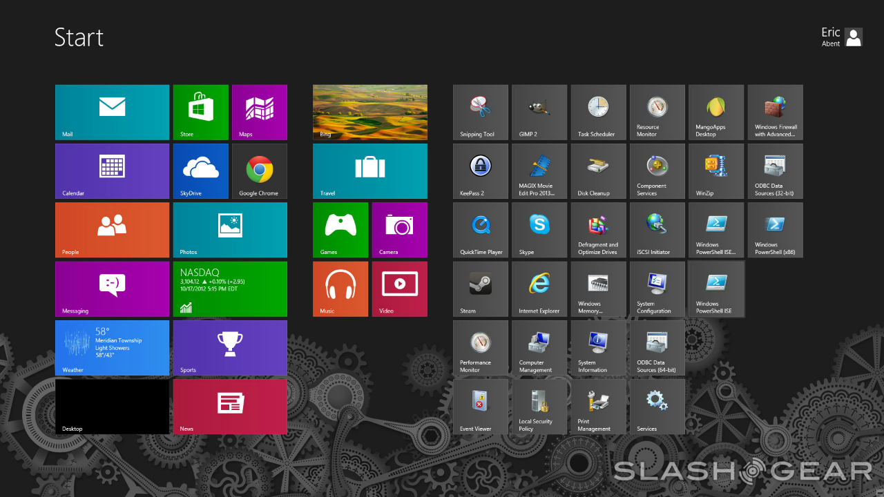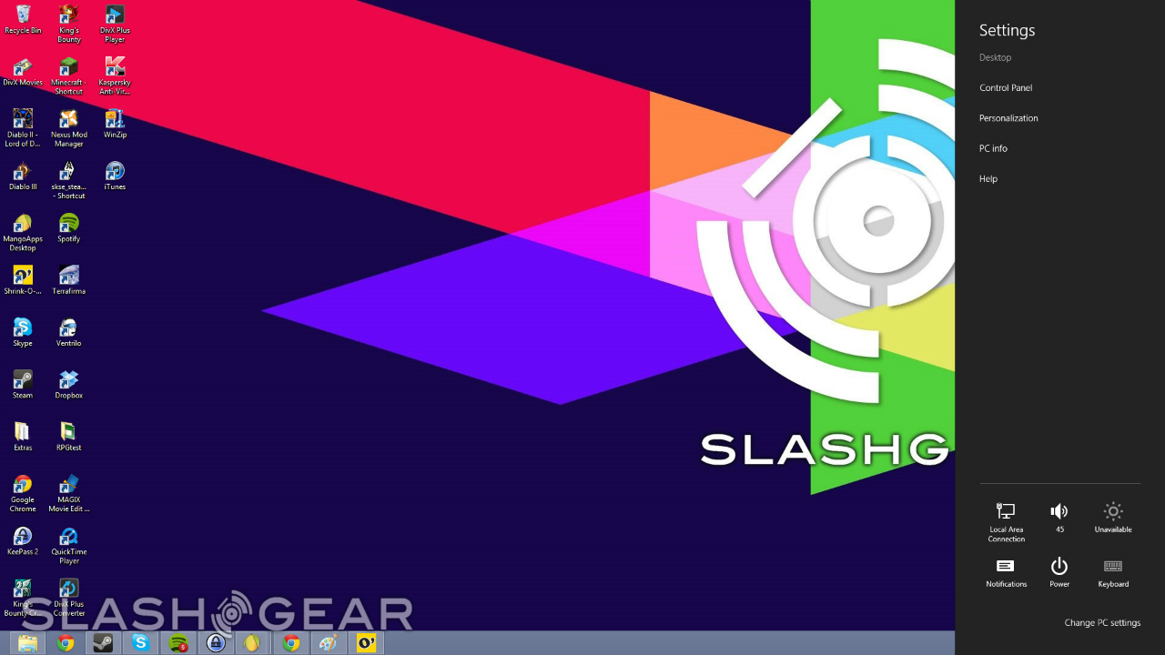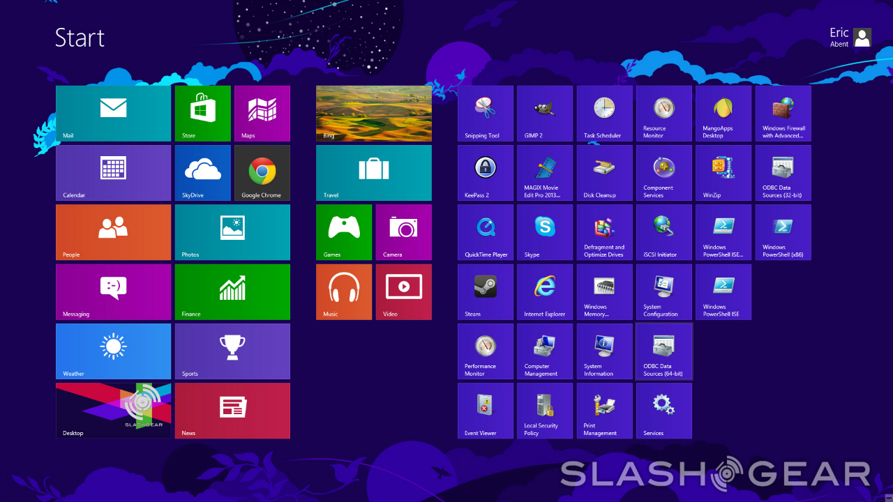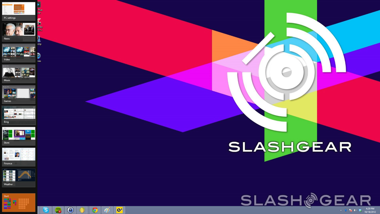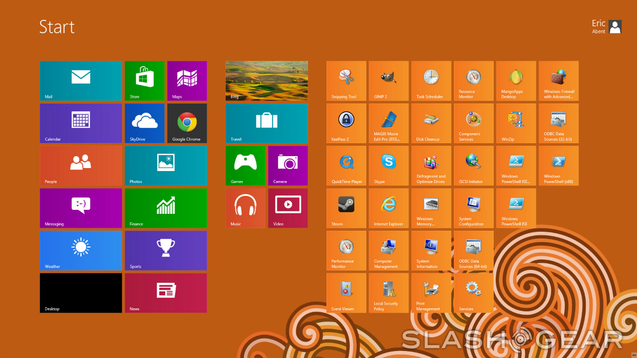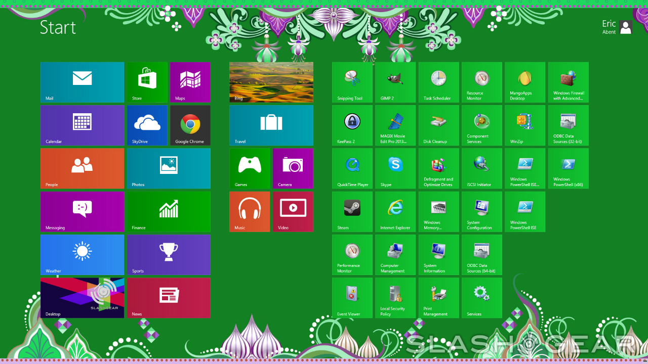 Speaking of customization, remember how I said earlier that you'll have a larger array of Start screen customization options at your disposal once you got Windows 8 up and running? Though you don't have more color scheme options, you do get to pick from a number of different background images through the PC Settings menu in the broader settings hub. Background images range from tame – a few swirls to add a minimalistic accent, for example – to loud and chaotic, such as one that populates your Start screen with jungle animals that look like they just jumped out of the impressionist era. It's pretty cool, and it does that much more to make your Start screen feel like your own.