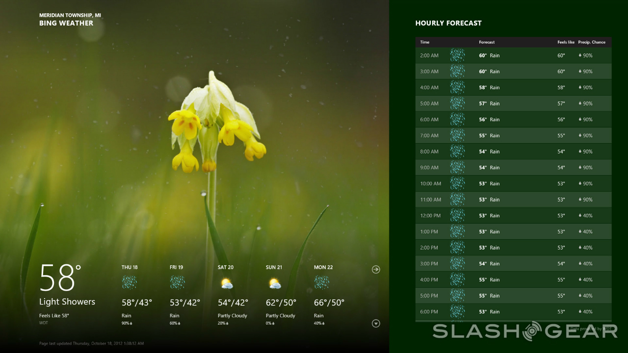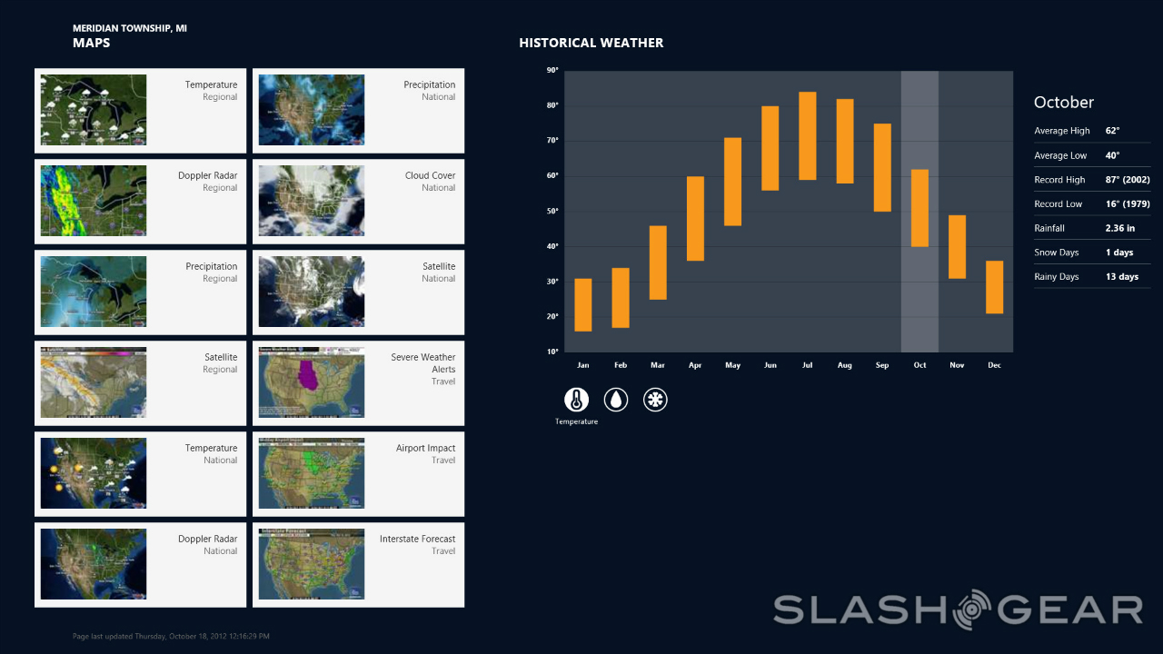 The Weather app is powered by Bing Weather, and naturally gives you forecast information for your area. It gives you a very broad range of data, including a five day forecast, an hourly forecast, more maps that you can shake a stick at, and even historical weather information. The Weather app is especially handy simply due to the fact that it presents you with a plethora of information. After checking it out, I see no reason to visit any of the weather sites I used to.
