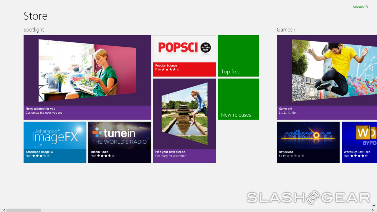 Finally, we come to the Windows 8 Store. The Store reminds me a lot of the Xbox 360 dashboard, and more specifically the Xbox Live Marketplace. There are already a healthy number of apps available for Windows 8, and they're split up into different sections right from the start, making navigation easy as pie. The Windows 8 Store is one of the most exciting parts of the Windows 8, and I'm really interested to see it become even more fleshed out.