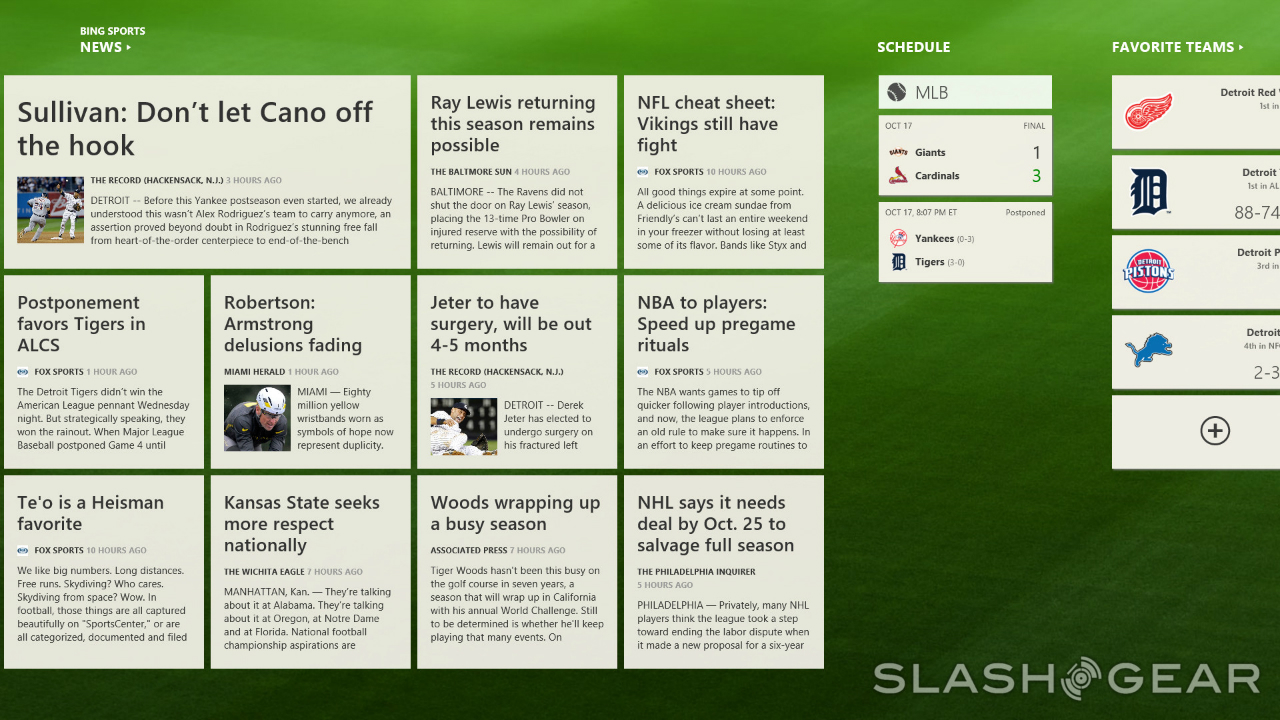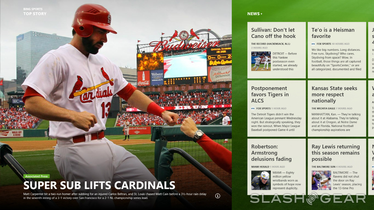 The Sports app is similar to the Financial app, in that it gives users a collection of news stories from a number of different publications and allows them to follow their favorite teams right there in the app. By right clicking anywhere in the app, users can bring up a menu that allows them to view news for different organizations and sports, whether that's the NFL, NBA, NHL, Golf, the Premiere League, of Formula 1.
