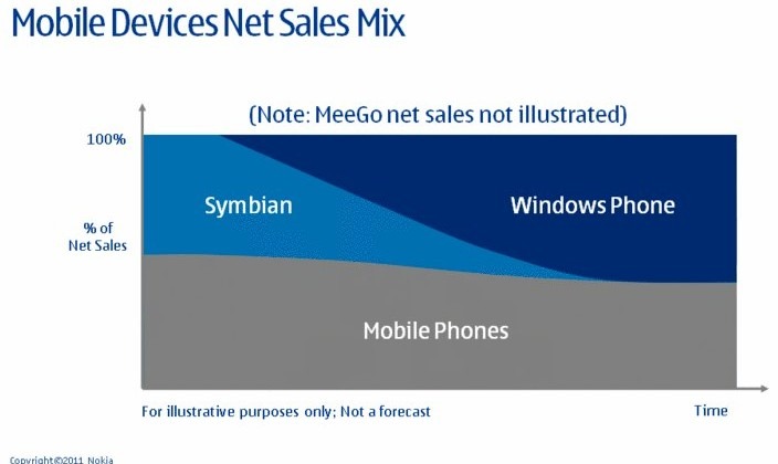 The writing for Symbian is on the wall – or on the slide, at least. As part of its financial presentation today, Nokia has illustrated the diminishing role Symbian will play as Windows Phone takes over its space in smartphones. The company also expects Windows Phone to eat into Nokia's Mobile Phone business.