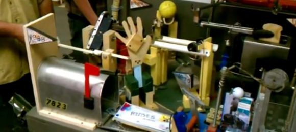 The latest machine from the team at Purdue has 300 steps and actually rotates large sections of the machine some points for more steps to happen. All those steps executed flawlessly on the video, and the end result is the inflation of a balloon that is then popped when an articulating hand springs out of a box. I can only imagine how long this machine took to create.