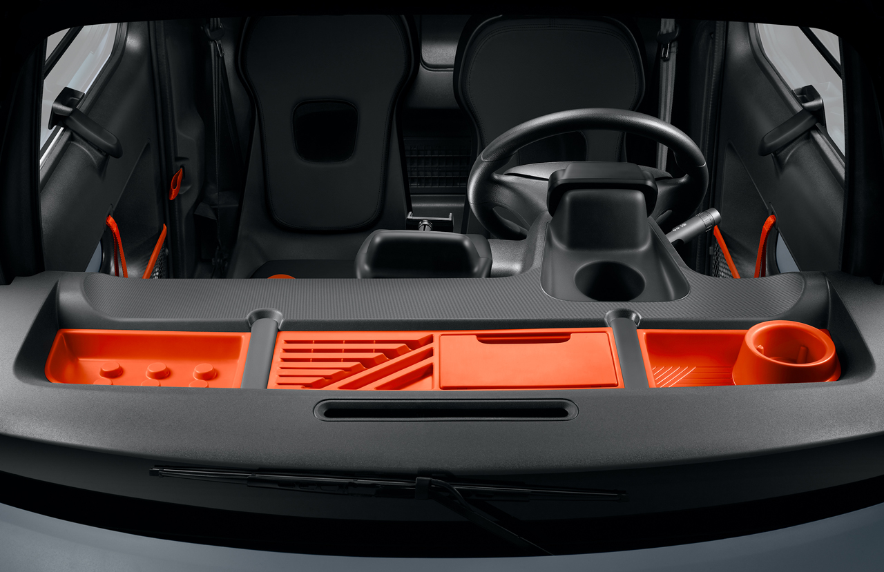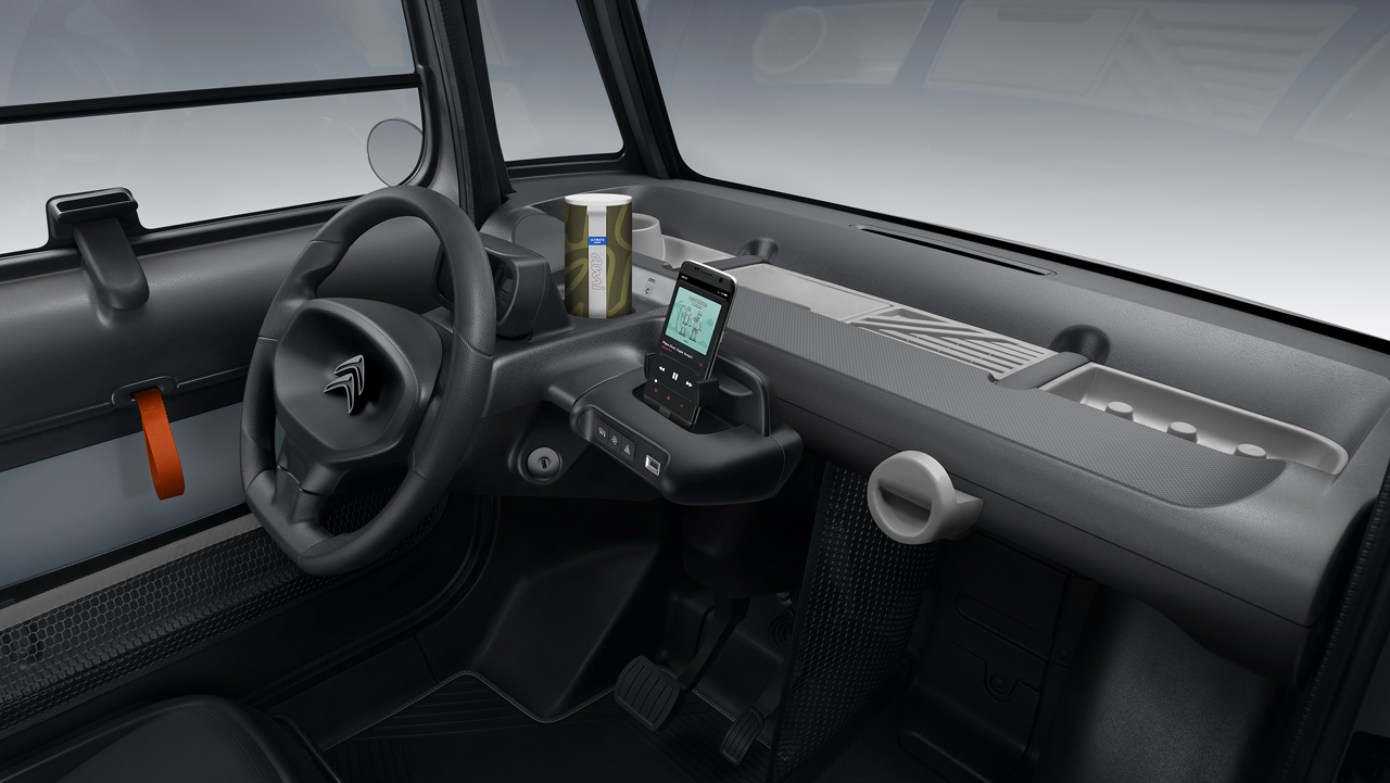 It can drive at speeds of up to 45 km/h and can go for up to 70 km. A full charge takes three hours using a conventional 220V outlet. The side windows of the car tilt upwards like the 2 CV. The interior can hold a suitcase and there is a storage area in the rear. Ami is a quirky vehicle aimed at those who live in crowded urban areas.