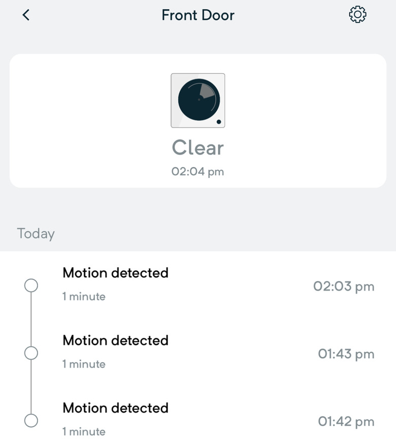 In addition to push alerts, the Wyze app offers a snapshot of the Wyze Sense sensors' statuses, namely whether the contact sensors are closed and if there is motion detected by the motion sensor. Tapping any sensor in the app pulls up a list of events associated only with that sensor — so, for example, if you wanted to see whether someone got into the fridge in the middle of the night, you can retrieve the log with events linked to the contact sensor on the refrigerator. The same is true for the motion sensor.