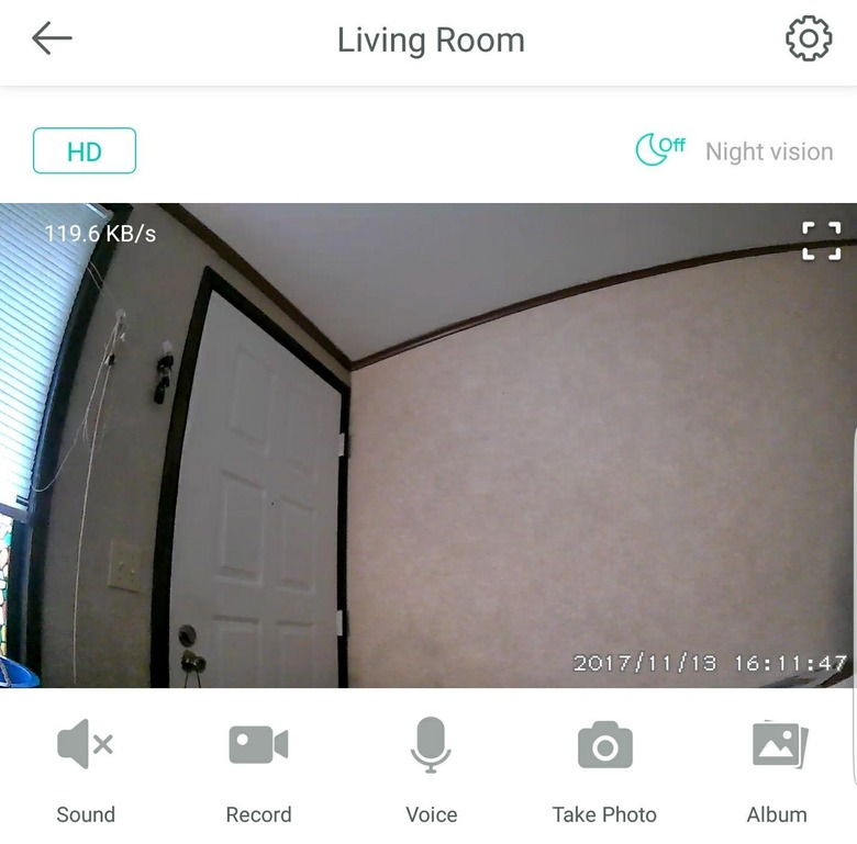 Wyze works with a companion iOS and Android app that, after registering the cameras, presents all of the video feeds in a single spot alongside features, controls and saved content. The controls are typical to home security cameras: voice (microphone), sound, taking a photo, recording a video, and opening albums of content captured by the app.