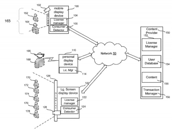 That patent application goes by the name Content Distribution Regulation by Viewing User. This application is for a "content presentation system and method" (the Xbox with Kinect, in this case) allowing content providers (Microsoft or whatever video company is participating) to "regulate the presentation of content on a per-user-view basis." With this system Microsoft describes how "the users consuming the content on a display device are monitored so that if the number of user-views licensed is exceeded, remedial action may be taken."