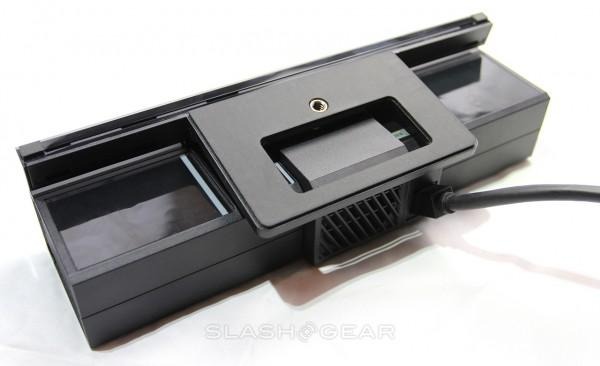 The device itself is about the size of an elongated brick, and it would seem as if Microsoft used essentially its entire industrial beauty allowance on this console in the Kinect alone. Here you've got the most elegant-looking Kinect in the history of this machine's family, and it's gone above and beyond the call of duty even here before waves of games and apps come to make use of it.