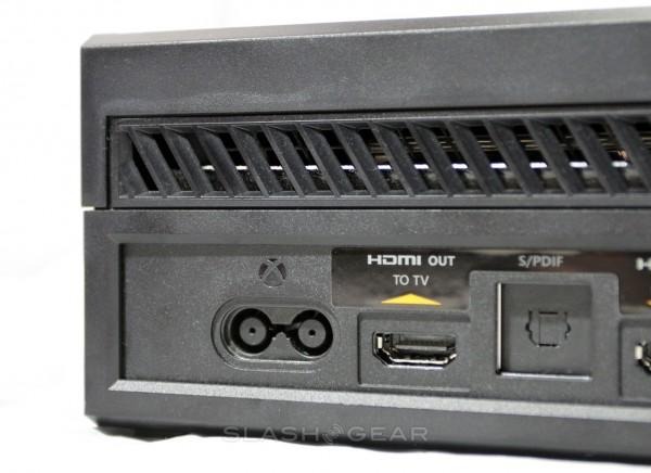 On the back of the Xbox One you've got a power supply port, HDMI-out (with 4K support) and HDMI-in (so you can run other devices or your cable box through, and S/PDIF for optical audio output. You'll be rolling with two USB 3.0 ports for more of the same action the single port near the front on the left provides, as well as a Kinect port – for the included Xbox One Kinect (with included cord, as well).