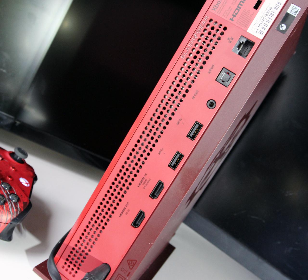 This special limited edition version of the Xbox One S is no average re-coloring. The folks responsible for tricking this console out have taken extra steps to make certain the device was no simple skin-job. This device looks like it's been customized personally – cut into by miniature beasts of war with claws of death. This comes from The Swarm – we'll see them again once the game is ready to roll later this month.