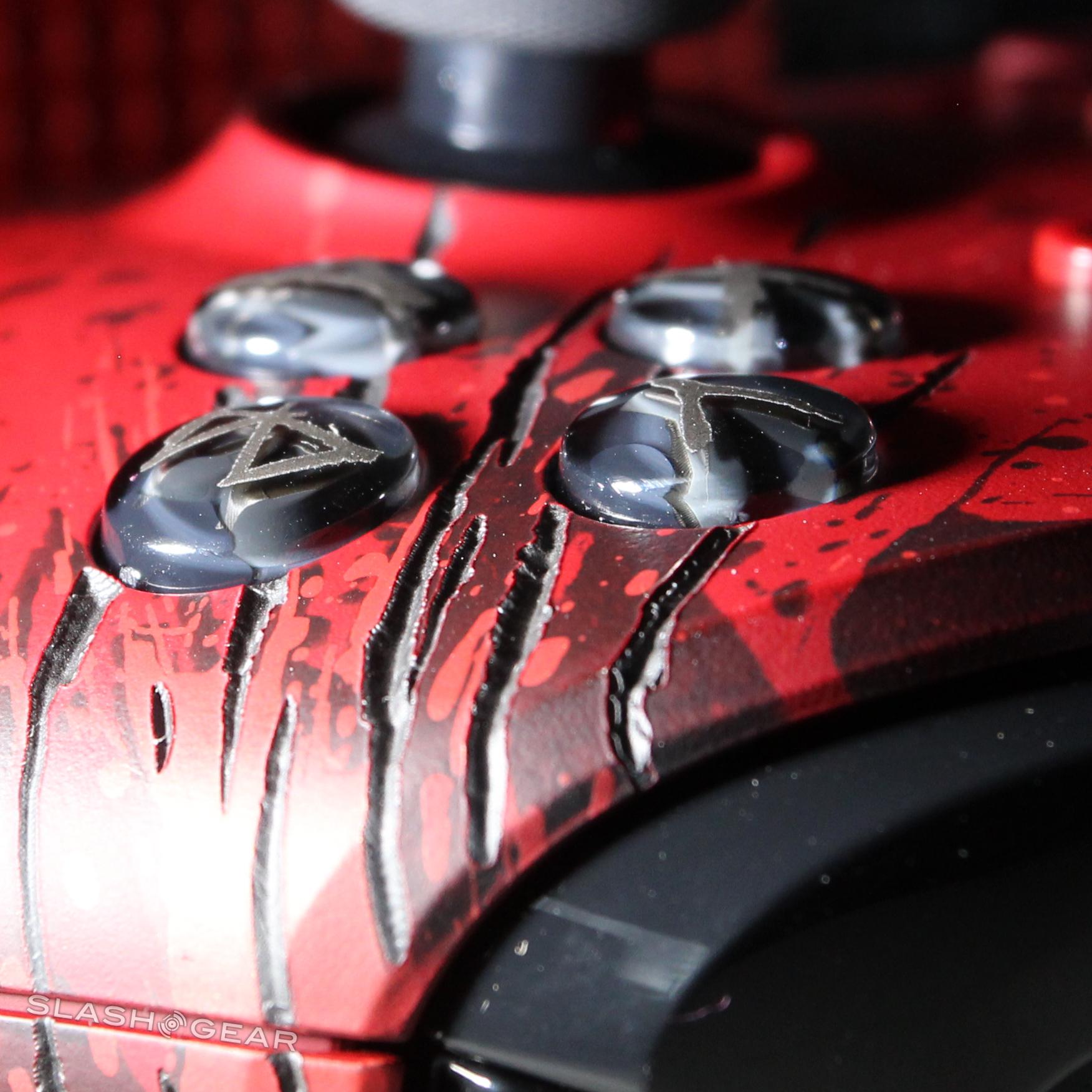 The controller, too, has customizations in both claw marks and blood splatter-like inks.