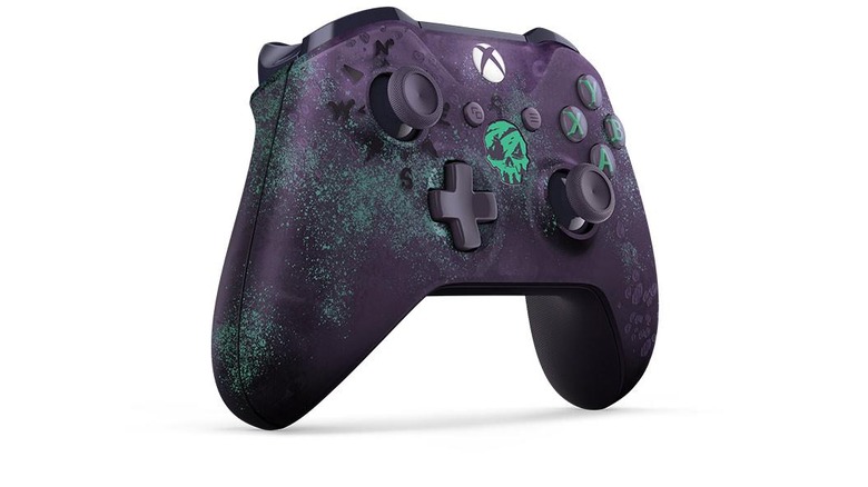 The controller's dark purple foundation color is covered with green specks and splatters that glow in the dark, as well as a skull-shaped logo that likewise glows when the room is dim enough. All of that is joined by a textured gripped. The controller has officially appeared on the Xbox One's Great Britain website; it's not clear when preorders will arrive on the US site.