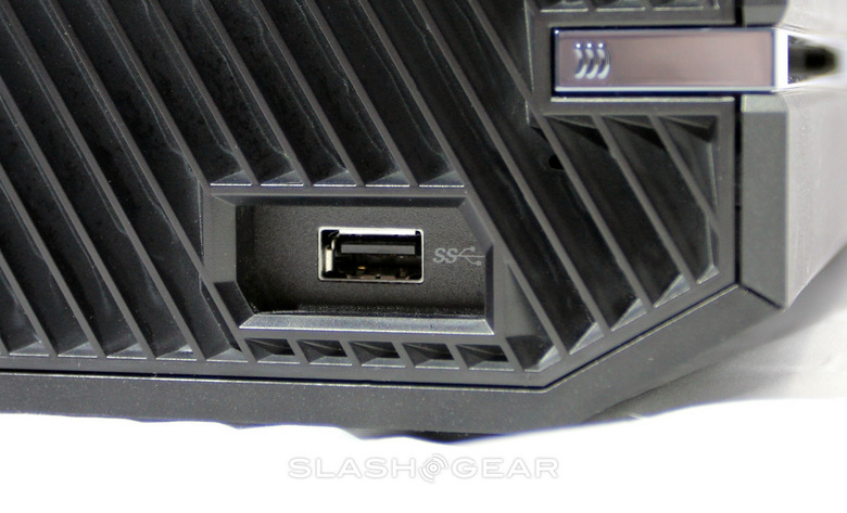 Once the Stereo Headset Adapter is on, the user will plug the larger end of the microUSB cable included in their package into the side USB slot of the Xbox One (the one you're seeing here, above, via our Xbox One Reivew). Instructions should begin to appear on-screen once the user plugs the USB into the console, prompting the user to plug the other end of the microUSB cable into the front of the controller.