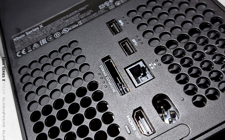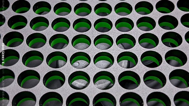 Through the green color accented array of spaces at the top of the console and a similar set of holes at the bottom, the air does flow. Every test we've done with games running on Xbox Series X and Xbox One X, the new console stayed cooler than the elder.