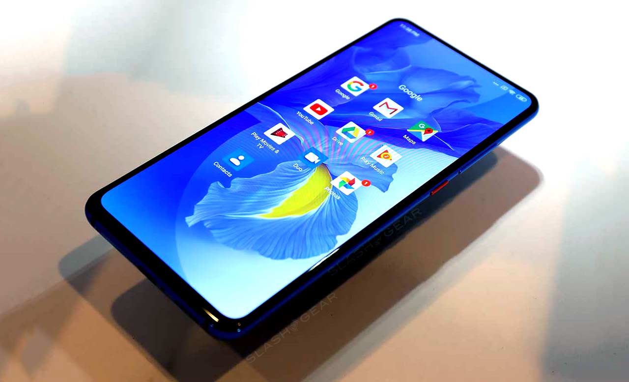 The front-facing camera appears in a pop-up mechanism very similar to that of the OnePlus 7 Pro. The left and right of this camera mechanism shine blue with LED light when the camera is raised or lowered – another premium design feature that makes this device feel like it punches well above its pricing tier.