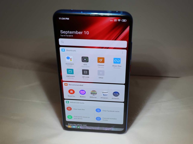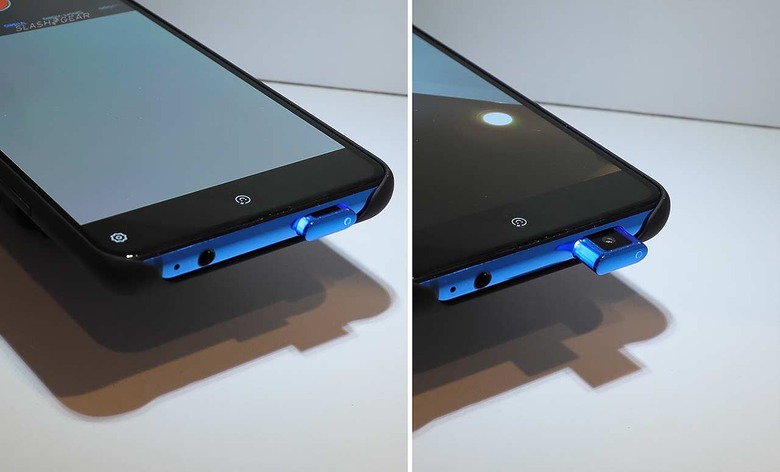 The front-facing camera appears in a pop-up mechanism very similar to that of the OnePlus 7 Pro. The left and right of this camera mechanism shine blue with LED light when the camera is raised or lowered – another premium design feature that makes this device feel like it punches well above its pricing tier.