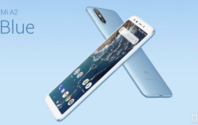 Mi A2 will be available soon in three iterations: 4GB+32GB for €249, 4GB+64GB for €299, and 6GB+128GB for €349. There'll be black, gold, and blue versions.