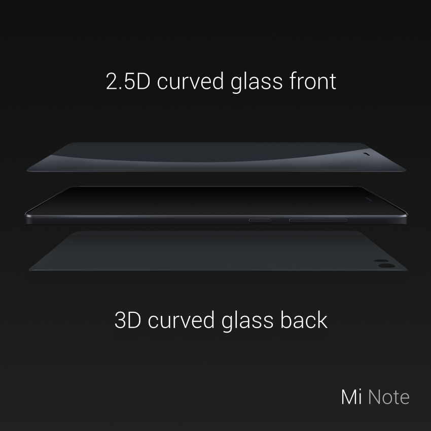 Unlike the stylus-bearing Galaxy Note, Xiaomi's "Note" has become synonymous with its phablet line. This Mi Note is no different, sporting a 5.7-inch screen made by Sharp and JDI. Sadly, Xiaomi isn't yet crossing over to the 2K field, so this one comes with 1080p only. At least one of two versions is. That said, Xiaomi wants you know that it hasn't exactly been skimping on the display. Instead, it is flaunting its curves, its glass curves, that is. The front panel is noted to use a "2.5D" curved Gorilla Glass 3 with a very slim 3.0 mm bezel while the back is also coated with glass but with a bigger "3D" curvature. How this translates into practice needs some real-world hands-on testing, but the Mi Note certainly isn't the first or only smartphone with a 2.5D glass display.