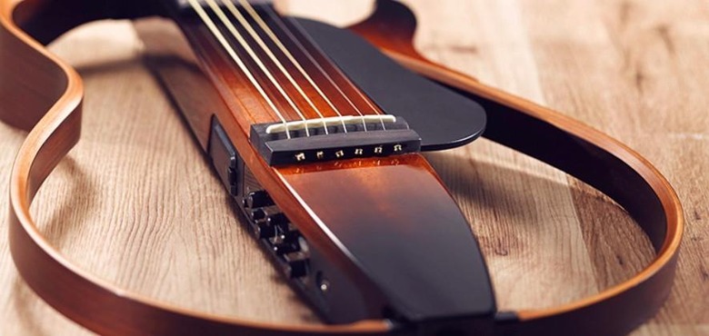 Says Yamaha, the Silent Guitars feature a top bout made of mahogany that detaches for portability reasons. The guitar has an input for playing along with a smartphone or music player, and includes what Yamaha says is an "easy-access control panel".