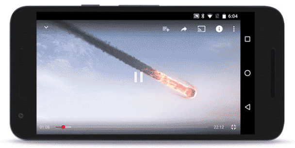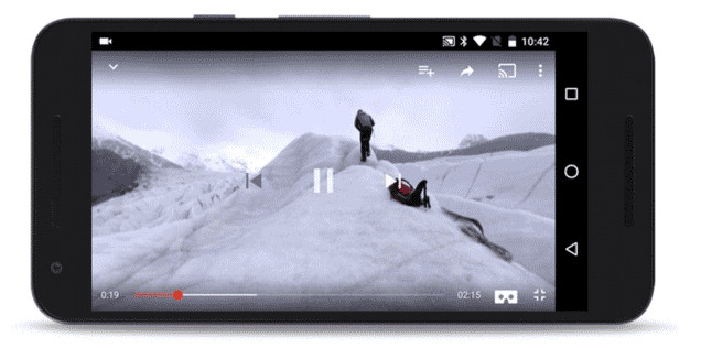 To access virtual reality view in YouTube, start up a YouTube video and turn your device to landscape mode. That's sideways.