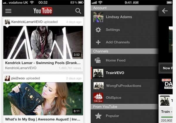 The app has a new YouTube channel guide access by swiping a finger from on the left edge of the screen revealing a guide with your subscribed channels. The new channel guide gives users instant access to everything they are subscribed to. The updated app also has new ways to share videos you like with people.