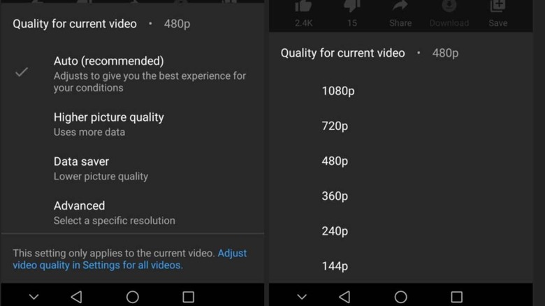There's also an advanced option that lets users pick a specific resolution. The assumption is that the data saver would be low quality up to 480p. Higher picture quality is presumably 720p and higher, while auto lets YouTube choose the ideal resolution depending on bandwidth. Under the advanced option are six resolutions to choose from.