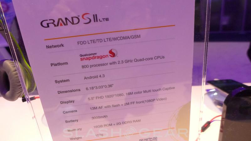 Keeping with the quality we found in terms of the display resolution, the Grand S II is powered by a Snapdragon 800 processor and has 16GB of internal storage and 3000 mAh battery. The camera setup includes a 2 megapixel on the front and a 13 megapixel on the backside.